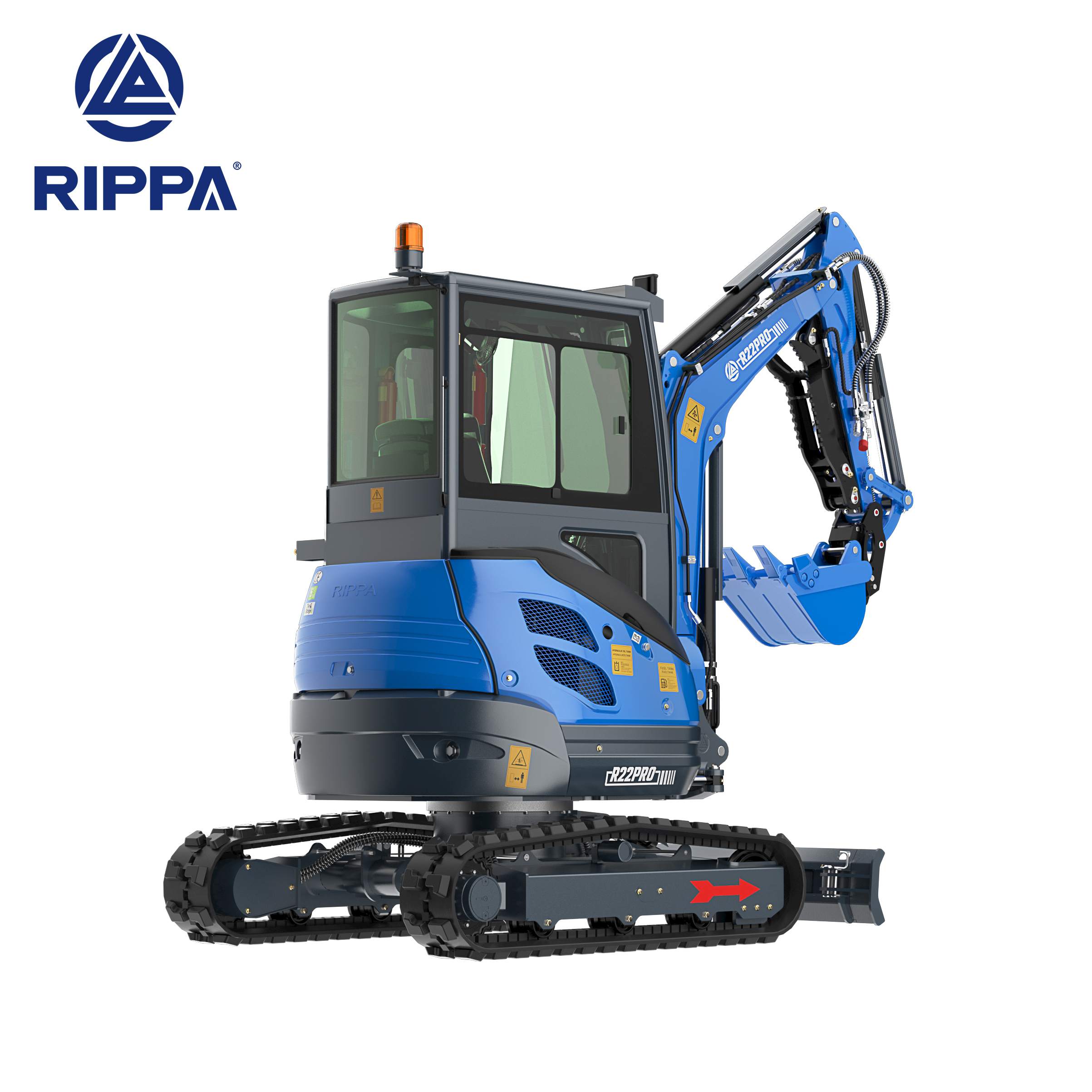 Die rippa R22 Mini Bagger ist eine 2,2-Tonnen-Maschine, die für Vielseitigkeit, Langlebigkeit und kompakten Betrieb ausgelegt ist. Sie ist ausgestattet mit einem Kubota D1105 Motor liefern. 18,2 kW (24,4 PS)und sorgt so für starke Leistung und hervorragende Kraftstoffeffizienz.